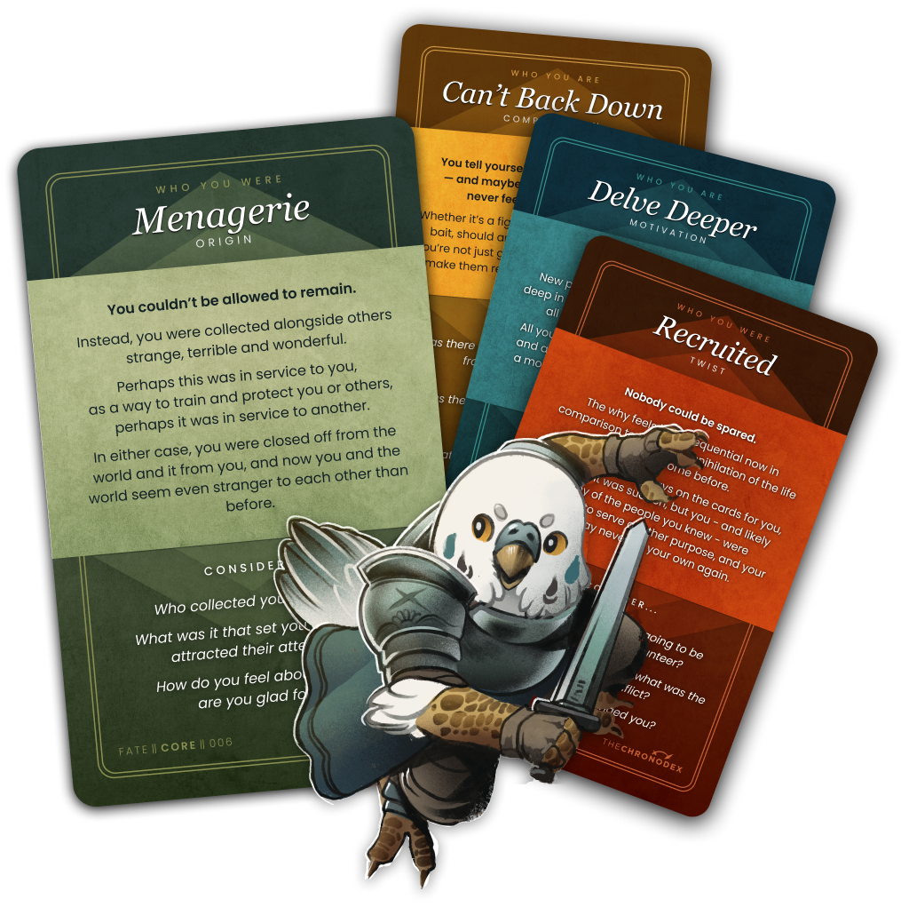 Each card comes published under Creative Commons Non-Commercial 4.0, meaning you're free to dream up, draw, write, and publish any stories you like. For commercial info, see below.
